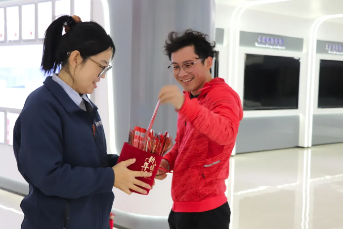 除了红包,今年还特别设置了抽幸运签环节。“无忧无虑”“年富一年”每一支签文都是对员工新年的美好祝愿,现场欢声笑语不断。